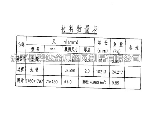 3.3金屬網(wǎng)片金屬網(wǎng)片采用Q235矩管邊框,規(guī)格30mm*50mm,矩管厚度2.0mm;內(nèi)部網(wǎng)絲采用HPB3006.5mm高線鋼絲冷拔加工,規(guī)格75mm*150mm(¢4.0mm),上部向外折角30°,垂直高度300mm。